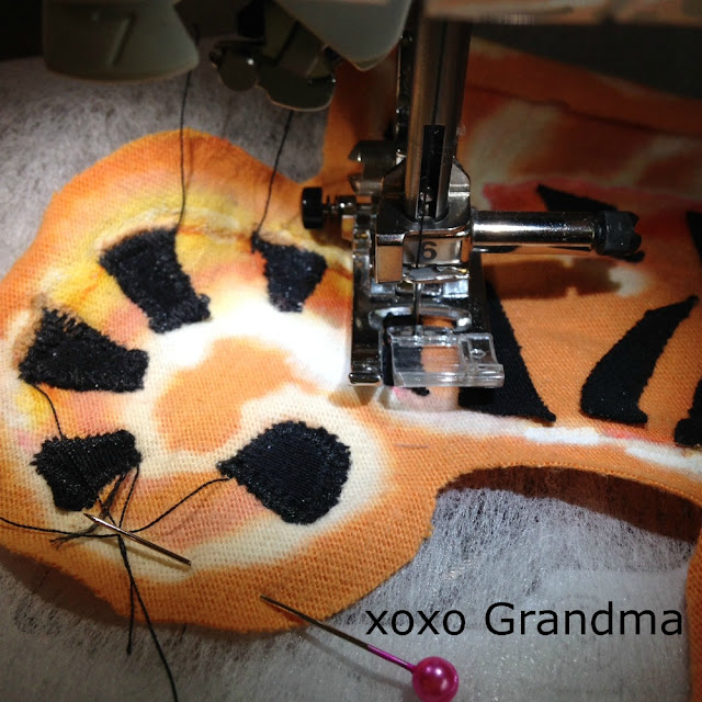 Cut out 2 pieces of your felt scraps and one of interfacing to make a door. Sandwich the interfacing between the felt and sew using a blanket stitch, either by hand or with a machine, all around the door. Stitch by hand around felt leaves (I used 7 leaves) and cover the door by slip stitching these leaves in place.