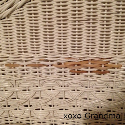 So, I know its hard to believe, but I haven't always had so much time to craft and create. At least not with fabric. Ages ago, I used to work for a high end furniture store that specialized in wicker and rattan. Because of that job, I have some beautiful pieces of wicker furniture in my home. Fast forward to last summer, and while grandchildren were visiting, a certain grandson, who will remain nameless, picked at an area of cracked wicker on one of my white wicker daybeds, even though I begged him to leave it alone. Sadly, he created a lovely hole right in the back of the daybed. Luckily, pillows can cover this hole but when those pillows are removed, YIKES, it looks bad!