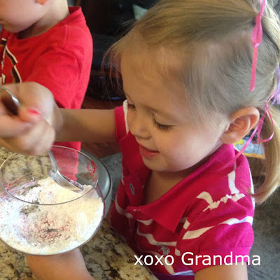 When stories are through, doesn't everyone like a good treat? My grandkids do! We'll be making fairy dust. My grandchildren helped by stirring the ingredients together. This magical treat is so easy to make and the best part is there is no hot summer baking. Here's how to make it: